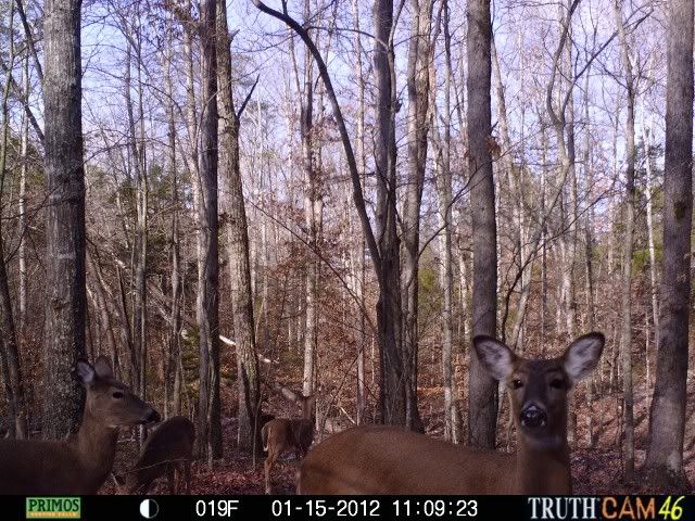 My buddys all have trail cams. They can be very useful. He gave up his one area to us. All his pics of bucks were after midnight and knew opening day someone would have to push one to you to get it.We scored 2 more muzzle loading season. Brings our yearly total to 25. I shot but misfired. Maybe I will clean my gun now. Posted by Paul on Jan. 16 2012,06:54