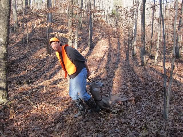 I did not know that about hanging a buck from the antlers.I just asked my girlfriend (the deer & elk biologist) about that and she said that if you're going to cape it (caping it is peeling the skin over the head and cutting off the neck to give to the taxidermist) right away then hanging it by the rear legs is fine. If you're going to take awhile then yeah, hang it head-up so that the blood doesn't coagulate in the head and face. I learned something new. Posted by unkbill on Nov. 25 2011,09:23