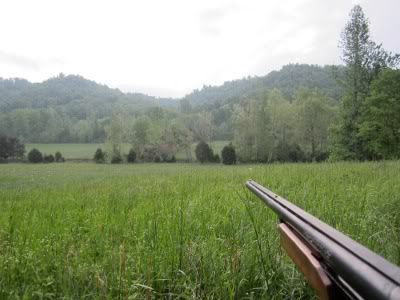 I had no delusions of shooting a bird.The early spring made the birds nest early, so it's a bad year for turkey hunting in these parts. Also, last year's flooding was bad for birds. Also, I rarely see turkey in my back yard. Also, it was the wrong time of day. Also, we were out for less than an hour. We did set up a decoy and have a gun, but this was more of just a practice run. Posted by Paul on Nov. 02 2012,16:35