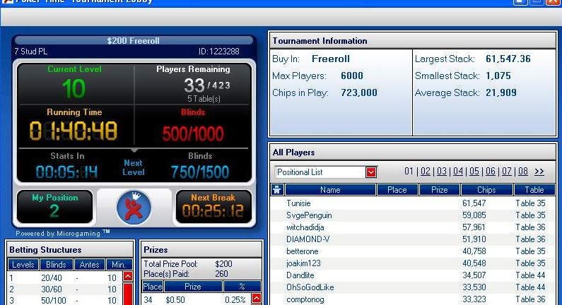 I did your tab-tab-space-enter trick to get into that one I mentioned earlier.I'll keep an eye out for those. Right now I'm playing on PokerStars for a bit. My friend played on PokerStars for a few days, then left for FullTilt. Then PokerStars emailed him and put a $5 credit into his account to get him back. It worked... for the 4 or so days it took him to blow $5 in the penny games. Now he's back on Full Tilt. Since I play free games for fun anyway, I'd love for them to try to lure me back with $5. Playing for rel money would just be icing on the cake. Posted by TPRJones on Apr. 26 2007,10:04