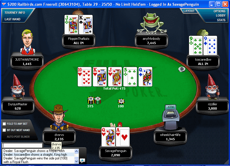 (Leisher @ Apr. 03 2008,11:42) QUOTE Hey Paul, do me a favor and send me those links again to those forums and such. If you're interested in playing freerolls, CardsChat and RailBirds are good. If you sign up, please use SavagePenguin as the referrer. Railbirds has the most freerolls, but the quality of content on CardsChat is superior. The biggest/best forums are < 2+2 > and < PocketFives >. I don't spend much time there though, as I prefer the CardsChat community. Posted by Paul on Dec. 22 2009,20:10