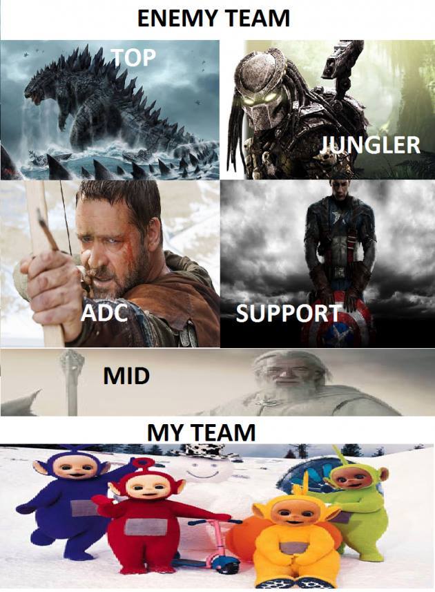 This one time I was on a team, and we sucked! Top, feed... jungle, feed... mid, feed... ADC, feed.. Support never fed, he was good.Anyways, we weren't good until we got one diamond level player on the team to carry us. He was a kid, and he was reeealllllly good. Then he couldn't put up with the feeding anymore and left to greener pastures. I blame my team for holding me down and keeping me from my rightful place in diamond, at least platinum. We argued, blamed, and downright hated each other at times. ...greatest gaming experience of my life, would do it all over again. I'll be on tonight ![]() ![]() Posted by Leisher on Dec. 04 2015,13:28