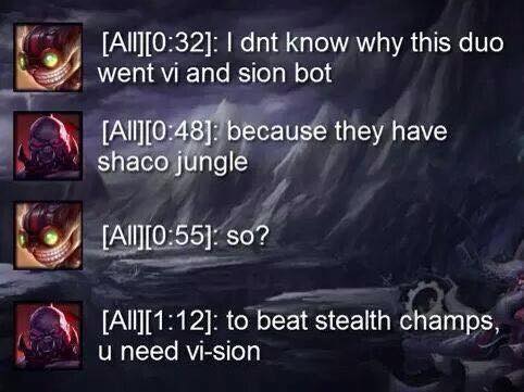 Talking to my buddies that you guys played against the other night, and just wanted to throw this awesome idea out there that they came up with. Zilean in lane with twitch, twitch goes invis, zilean arms him with a time bomb, twitch busts butt to the nearest champion....Invisible Twitch Bombing. Is that not awesome or what heheheh.