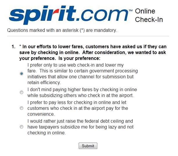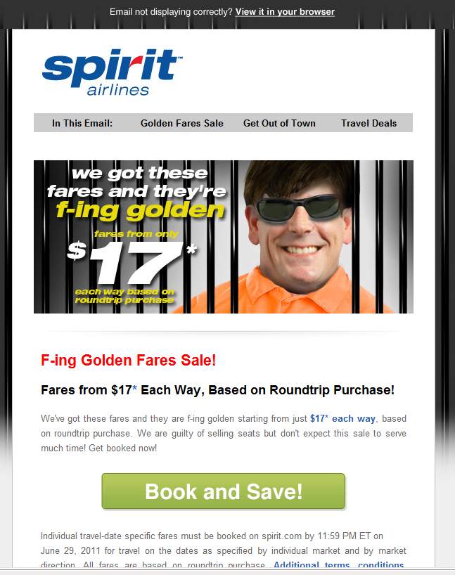 "Spirit Airlines: The fastest and cheapest way to flee the state."