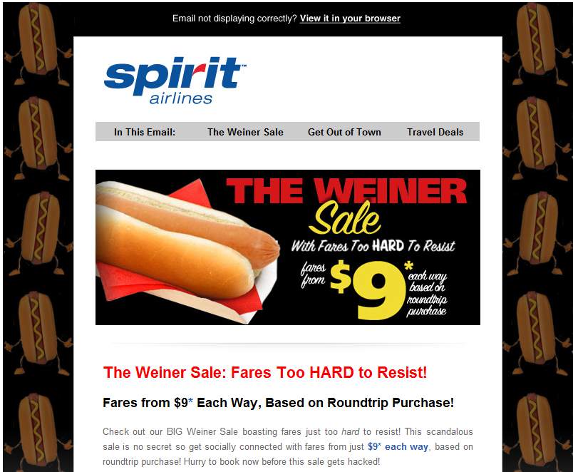 Topic: Just got this in email from Spirit Airlines, Subj: Want to see our Weiner? | < Next Oldest | Next Newest > |