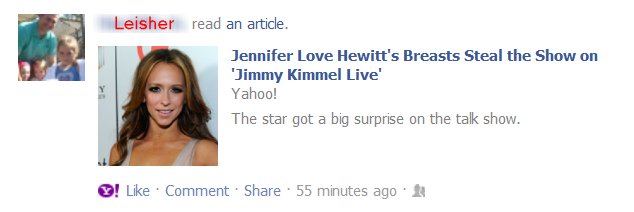 It's an innocent, and funny article, yet it makes me look shitty because the writer had fun with the headline. An article that I didn't tell Yahoo to let the world know I read it.