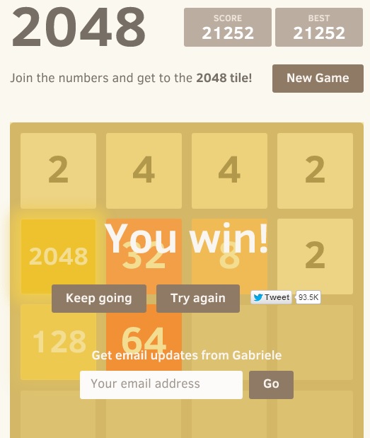2048, bitches! 20,568 pts. And still going...